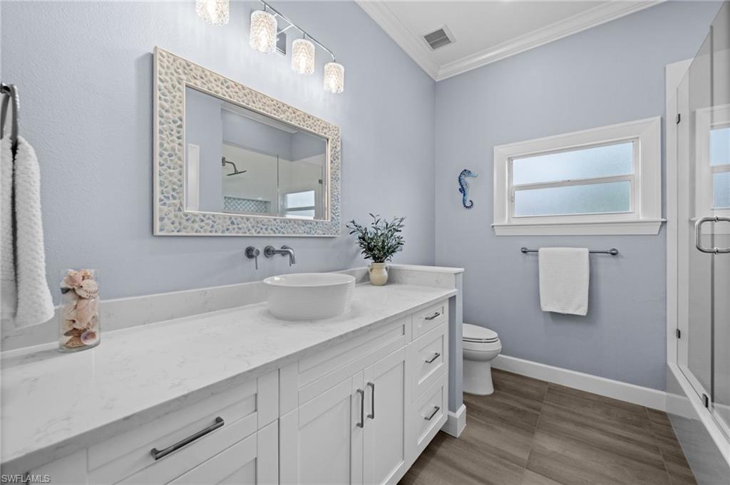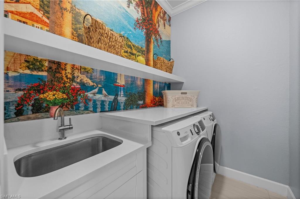 Prepare to be captivated by this beautifully reimagined 3-bedroom, 3-bath pool home with a den (optional 4th bedroom) and an oversized 3-car garage. Tucked away on a quiet cul-de-sac, mature landscaping and charming curb appeal set the tone for an inviting, elevated lifestyle. Inside, natural light fills a spacious split-bedroom floor plan that blends casual elegance with modern functionality. A full interior transformation brings a cohesive, fresh aesthetic throughout, boasting new 24x24 tile flooring, crown molding, recessed lighting in every room, designer fixtures, and beautifully updated trim on all windows and sliders. For lasting value and peace of mind, the home features a whole-house water filtration system, newer PEX plumbing, a tankless water heater installed in 2024, and Storm Smart hurricane screens and electric shutters. At the heart of the home, the beautifully redesigned kitchen is an entertainer's dream. It features all new appliances, granite countertops, custom hood, new cabinetry, overhead lighting, and an impressive 12-foot island. A charming front sitting area enhances the home's flow and ambiance, featuring custom built-in cabinetry, shiplap detailing, a mirror backing, and a dedicated wine refrigerator. Additional cabinetry in the main living area provides seamless, functional storage. The primary suite is a private sanctuary, featuring a custom-designed walk-in closet and a stunning spa-inspired bathroom with modern finishes. Guest spaces are equally inviting with fully renovated bathrooms offering contemporary style. Outdoor living is designed for relaxation with a saltwater pool (converted in 2023), a fully fenced private backyard, and partial lake views. This home is a true gem, where every detail has been thoughtfully upgraded, offering a harmonious blend of luxury and comfort. Residents enjoy the community benefits of larger lots, low HOA fees (including cable and fiber-optic internet), and two convenient entrances from Livingston Road and US-41.