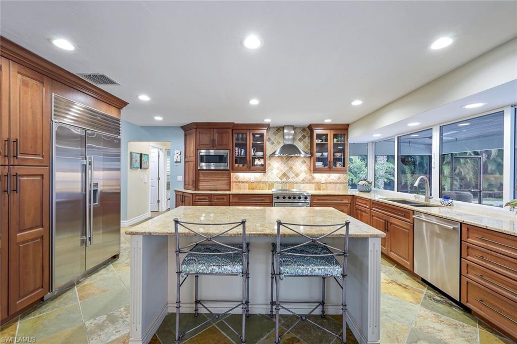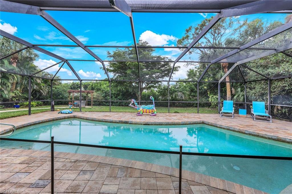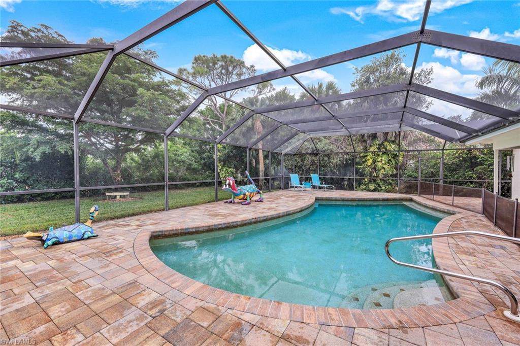 ***OPEN HOUSE CANCELED*** Merge elegance with a premier location in the heart of Naples. As you enter, the paver circular driveway leads to an open-concept design that creates a welcoming ambiance with large slider windows. The gourmet kitchen is equipped with top-of-the-line Viking and Sub-Zero appliances, granite countertops, custom cabinetry, and oversized island. The adjacent dining area is the perfect setting stage for memorable gatherings. Whether preparing casual meals or hosting elaborate dinner parties, this space effortlessly combines style and functionality. Retreat to the spacious master suite featuring a luxurious bathroom with extensive custom cabinetry and private courtyard sanctuary. Step outside to the expansive wood panel ceiling lanai and upgraded paver pool deck with oversized pool overlooking the manicured fenced backyard with pergola and paver walkway--a perfect setting to savor the Florida lifestyle. Upscale shopping, fine dining, and the beaches are just minutes away. Gated community, hurricane impact windows throughout (except kitchen window), new roof in Dec. 2018. Extremely low HOA fees of $631/qtr incl. cable & wifi. Golf Membership not required.