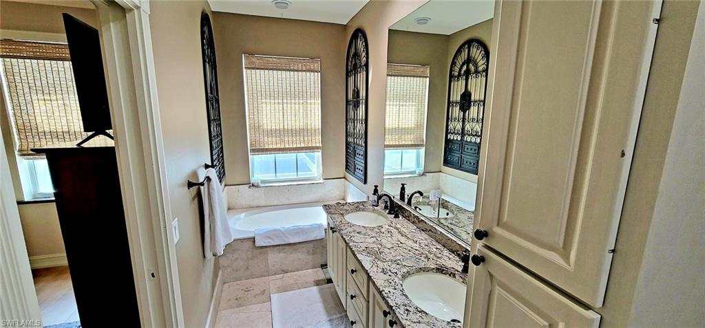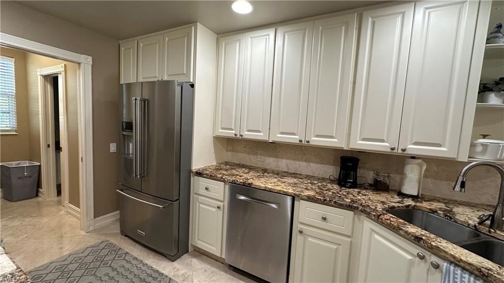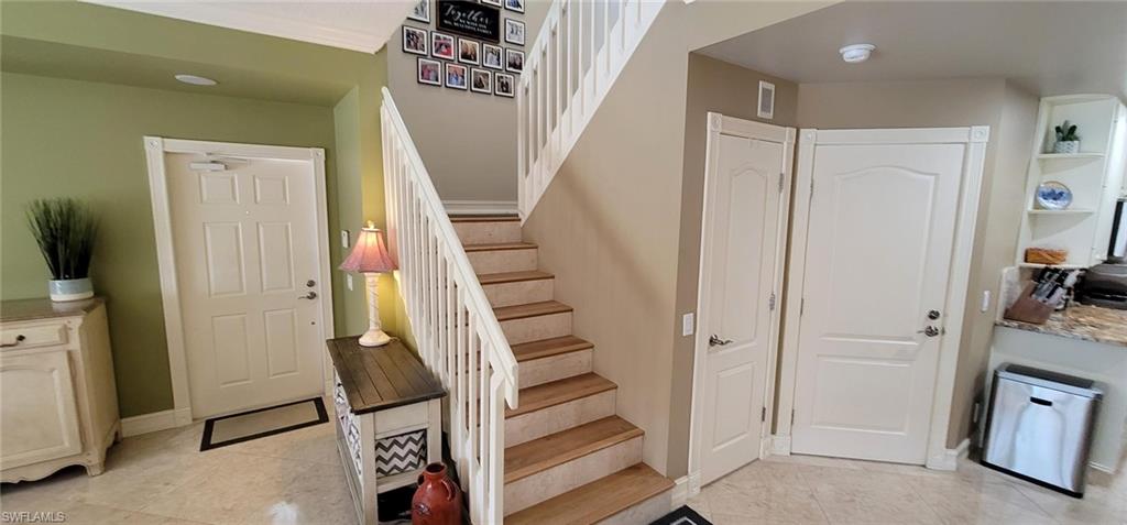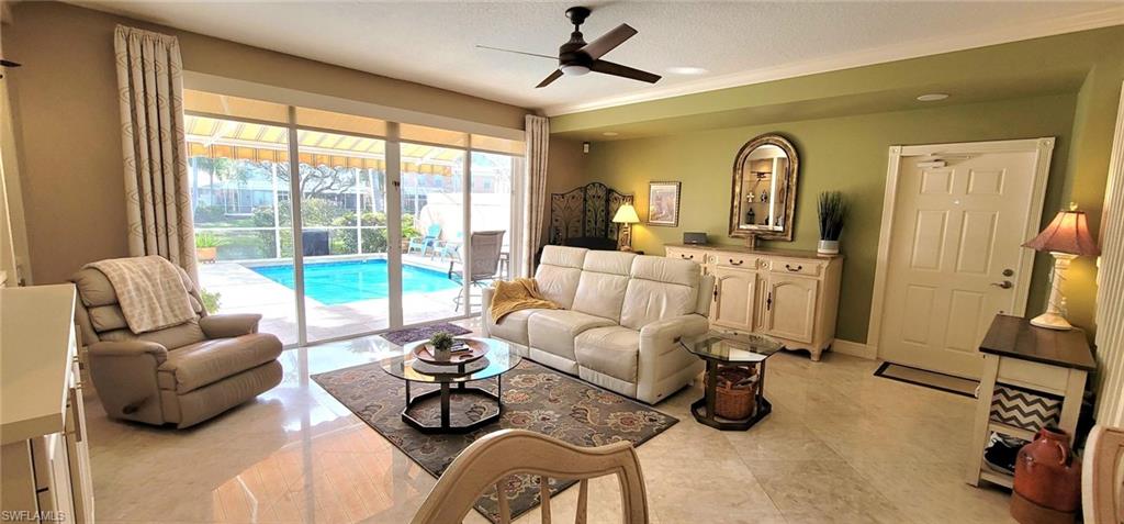 Beautifully renovated 3 bedroom 2 1/2 bath townhouse with custom pool in the quiet family friendly Cove in north Naples. This prime location is minutes to the beach, Shopping and all the new restaurants at Logan's landing and Founders square. Park 1 car in your garage with space for three more in your driveway. Highlights include Kinetico whole house water filtration system, recently redone heated saltwater pool with high end Travertine pavers covering entire lanai, motorized awning on back lanai, impact windows and shutters, neutral colors, marble floors down and LVP upstairs, granite countertops, crown molding throughout, upgraded appliances, new large sized Trane AC unit, jetted tub in main bedroom, two large walk in closets, in addition to two regular sized closets. Under stairs storage plus extra storage in garage. An extensive list provided of upgrades too numerous to mention and not usually seen in this development. LOW HOA DUES.